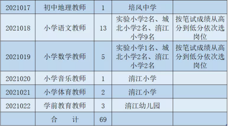 1.中小學崗位:采取筆試擇優(yōu)錄取的方式進行,筆試成績總分100分。筆試成績計分精確到小數(shù)點后面1位數(shù)。按照每個崗位考試人員的筆試成績從高分到低分依次選取崗位并確定擬聘人員名單。