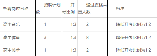 根據(jù)2021年5月21日發(fā)布的《鹽城市實(shí)驗高級中學(xué)公開招聘骨干教師公告》,6月4日網(wǎng)上報名結(jié)束并完成資格審核,有部分崗位審核通過人數(shù)未達(dá)開考比例,經(jīng)市人社局同意,現(xiàn)對部分崗位降低開考比例。具體情況如下: