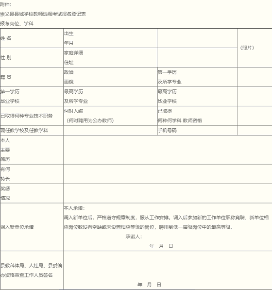 附件:崇義縣縣城學校教師選調(diào)考試報名登記表