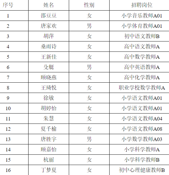 常熟市2021年教育系統(tǒng)公開招聘中小學(xué)教師擬錄用名單(三)