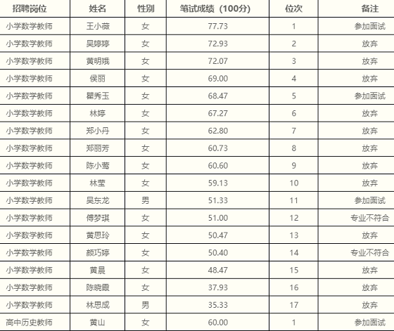 面試成績及擬聘用信息將通過福州市永泰縣人民政府(網(wǎng)址:http://ytx.fuzhou.gov.cn/)公布。