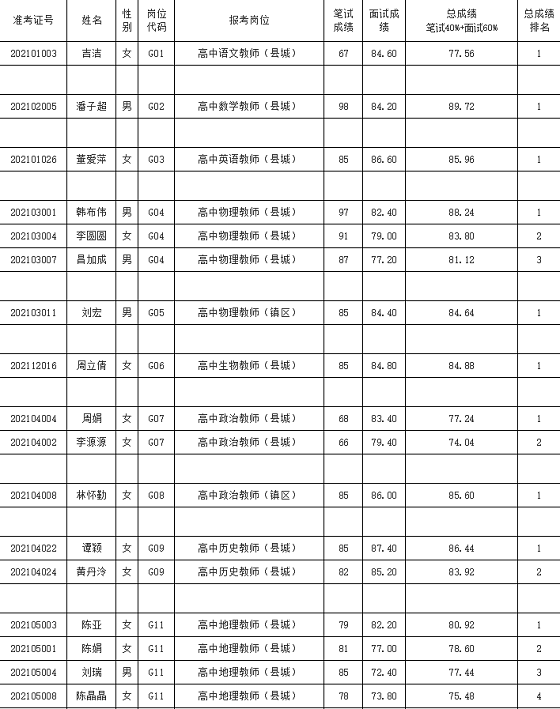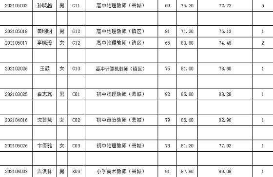 根據(jù)《建湖縣部分中小學校2021年第二次公開招聘教師公告》和《關(guān)于核減建湖縣中小學2021年第二次公開招聘教師部分崗位招聘計劃的公告》精神,現(xiàn)將擬進入體檢、考察程序人員名單予以公布: