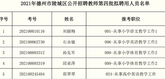 2021年德州市陵城區(qū)公開招聘教師第四批擬聘用人員名單