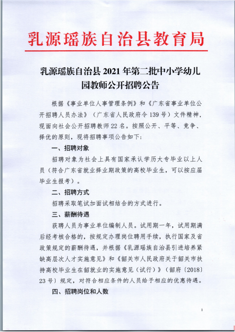 附件1:乳源瑤族自治縣2021年第二批中小學(xué)幼兒園教師公開招聘崗位表.xlsx