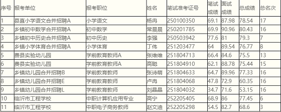 2021年度費縣教育系統(tǒng)部分事業(yè)單位公開招聘教師在體檢、考察環(huán)節(jié)中,主動放棄考生共有16人,根據(jù)《2021年度費縣教育系統(tǒng)部分事業(yè)單位公開招聘教師簡章》規(guī)定及考試總成績,從所招聘崗位面試人員中按考試總成績從高分到低分一次性等額遞補11名考生作為體檢及考察遞補人選。