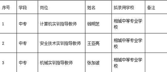 根據(jù)《2021年蘇州市相城區(qū)公開招聘職業(yè)學校教師公告》規(guī)定,經(jīng)報名、考核、考察(政審)、體檢等程序,初步確定擬錄取以下3名同志為相城區(qū)年金制教師,現(xiàn)予以公示,公示時間為7個工作日(9月3日—13日)。