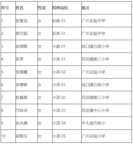 二、廣州市從化區(qū)2021年第三批公開招聘教師擬聘人員名單