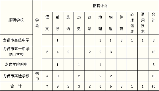 龍巖市市屬中學(xué)2022年專項招聘優(yōu)秀高校畢業(yè)生計劃表