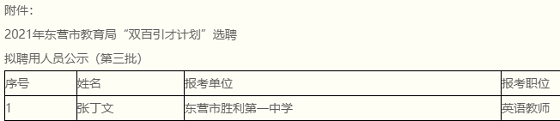 附件:2021年?yáng)|營(yíng)市教育局“雙百引才計(jì)劃”選聘擬聘用人員公示(第三批)