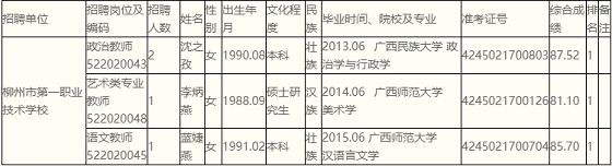根據《2021年度柳州市事業(yè)單位公開考試招聘工作人員公告》要求及安排,沈之孜等3名同志經筆試、面試、考核、體檢合格,符合聘用條件。經研究決定,擬聘用沈之孜等3名同志為我單位下屬事業(yè)單位工作人員,現予以公示,公示期5個工作日(2021年9月13日至2021年9月17日)。對擬聘用的同志如有異議,請以書面形式,并署真實姓名和聯系地址,于2021年9月17日前郵寄或直接送我單位(郵寄地址為:柳州市文惠路87號;郵編:545001,電話0772-2815940),群眾如實反映有關問題受法律保護。