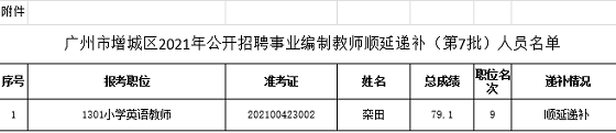 附件:廣州市增城區(qū)2021年公開招聘事業(yè)編制教師順延遞補(bǔ)(第7批)人員名單.xlsx
