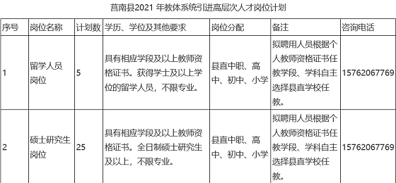 附件:莒南縣2021年教體系統(tǒng)引進(jìn)高層次人才崗位計(jì)劃