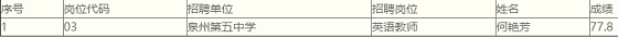 根據(jù)《2021年泉州市直公立學(xué)校專項(xiàng)公開招聘新任教師公告》,現(xiàn)將擬聘用人員及成績(jī)公示如下,公示時(shí)間:2021年9月23日--2021年9月29日。若有疑問(wèn),請(qǐng)咨詢0595-22781630。