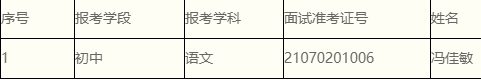 根據(jù)《公告》本次招聘初中語文學科出現(xiàn)空崗1人,進入遞補體檢1人,名單如下: