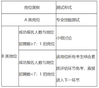 3.綜合素質評估主要采取專業(yè)技能測試、小組討論、問答等形式,對考生進行考察。各崗位具體考核形式見下表。