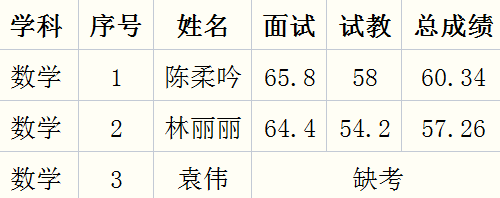 廣州中學(xué)2021年9月招聘編外聘用制專任教師考試工作已完成,現(xiàn)將成績公告如下: