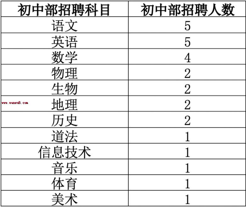 1. 小學(xué)部:語文、數(shù)學(xué)、英語、體育、科學(xué)教師若干名;