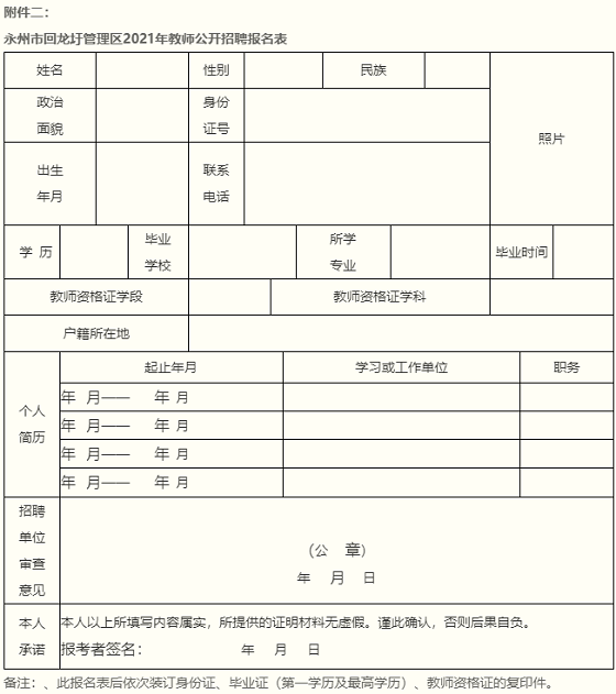 附件2:《永州市回龍圩管理區(qū)2021年教師公開招聘報(bào)名登記表》