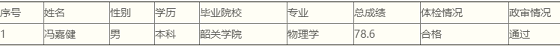 根據(jù)《新豐縣2021年事業(yè)單位公開招聘新豐縣第一中學(xué)物理教師公告》,經(jīng)報名、資格審查、面試、試教、體檢、考察等工作程序,馮嘉健同志符合報考職位聘用條件,擬聘用為新豐縣第一中學(xué)物理教師,現(xiàn)予以公示。具體名單如下。