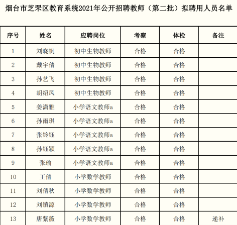 附件:煙臺(tái)市芝罘區(qū)教育系統(tǒng)2021年公開(kāi)招聘教師(第二批)擬聘用人員名單