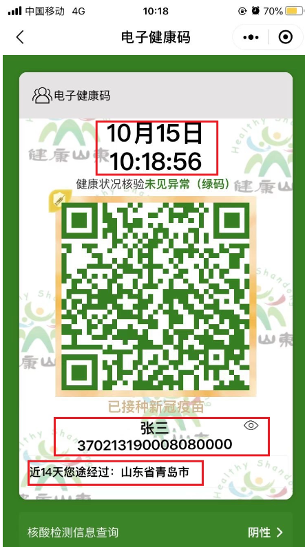 附件2:山東省電子健康通行碼(綠碼)及行程碼(示意圖)