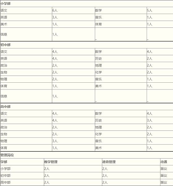 優(yōu)秀教師年薪6-16萬元,有工作經(jīng)驗的優(yōu)秀教師待遇面議。985、211師范院校優(yōu)秀畢業(yè)生,共補(bǔ)助人才津貼5萬(前三年每滿一年補(bǔ)一萬,第四年滿再補(bǔ)兩萬)。
