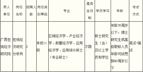 根據(jù)《廣西壯族自治區(qū)事業(yè)單位公開招聘人員實施辦法》(桂人社發(fā)〔2011〕155號)及有關(guān)文件精神,結(jié)合本單位實際工作需要,現(xiàn)廣西宏觀經(jīng)濟研究院2021年度公開招聘有關(guān)事項公告如下: