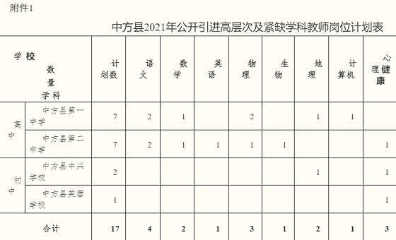 (3)開考比例。引進(jìn)崗位計劃數(shù)與報考人數(shù)原則上不得低于1:2。達(dá)不到開考比例的,經(jīng)中方縣2021年公開引進(jìn)高層次及緊缺學(xué)科教師工作領(lǐng)導(dǎo)小組研究,可適當(dāng)降低開考比例或調(diào)整引進(jìn)計劃。