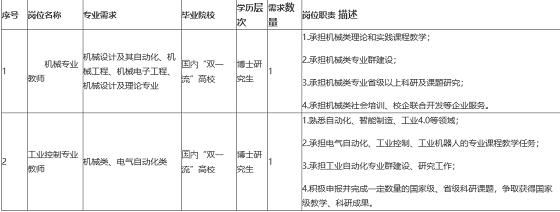龍巖技師學(xué)院2022年事業(yè)單位專(zhuān)業(yè)技術(shù)類(lèi)引進(jìn)生崗位需求表