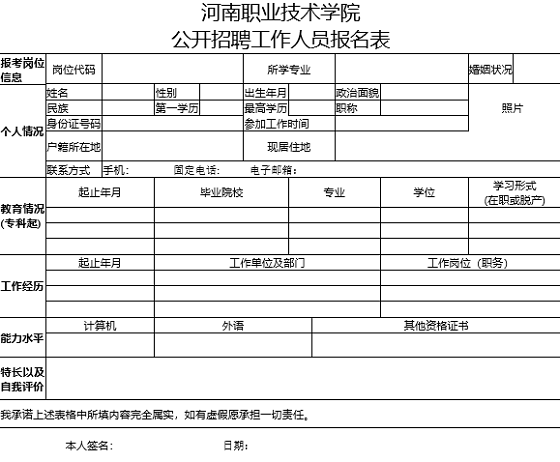 2.河南職業(yè)技術(shù)學(xué)院公開招聘工作人員報名表