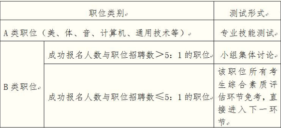4.綜合素質(zhì)評(píng)估主要采取專(zhuān)業(yè)技能測(cè)試、小組集體討論等形式,對(duì)考生進(jìn)行考察。各職位具體考核形式見(jiàn)下表。