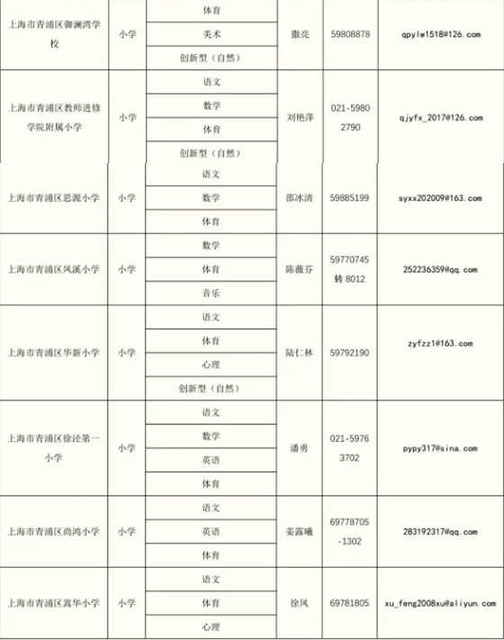 詳見附件:《青浦區(qū)教育局2022年高校校園師資招聘各校崗位需求及聯(lián)系方式》一覽表。