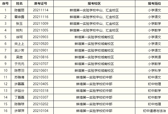 根據(jù)《蚌埠市蚌山區(qū)公開招聘高層次優(yōu)秀教師公告》要求,發(fā)布公告、報名、資格審查、面試、體檢、考察等程序已履行完畢,現(xiàn)將蚌埠市蚌山區(qū)公開招聘高層次優(yōu)秀教師考察合格及擬聘用人員進行公示。公示時間:2021年11月17日—11月23日。