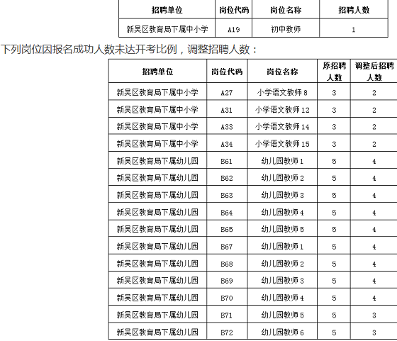 根據(jù)《無錫高新區(qū)(新吳區(qū))教育系統(tǒng)2022年校園招聘教師公告》規(guī)定,經(jīng)無錫市人力資源和社會保障局批準(zhǔn),下列崗位因無人報名,直接取消招聘計劃。