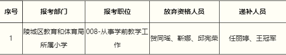 根據(jù)《2021年德州市陵城區(qū)第二批公開招聘教師簡章》《2021年德州市陵城區(qū)第二批公開招聘教師考察及調(diào)檔的通知》的相關(guān)規(guī)定,現(xiàn)將第二批考察遞補(bǔ)人員公告如下,請以下人員于11月23日(上午9:00-11:00)到陵城區(qū)教育和體育局三樓人事科進(jìn)行考察及調(diào)檔,相關(guān)事宜及攜帶材料參照陵城區(qū)教育和體育局官網(wǎng)《2021年德州市陵城區(qū)第二批公開招聘教師考察及調(diào)檔的通知》。