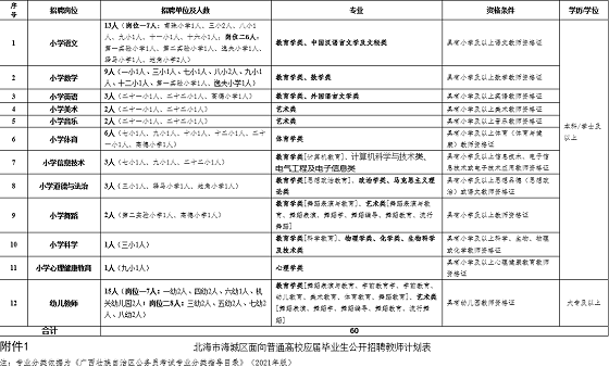 附件:1.北海市海城區(qū)面向普通高校應(yīng)屆畢業(yè)生公開招聘教師計劃表