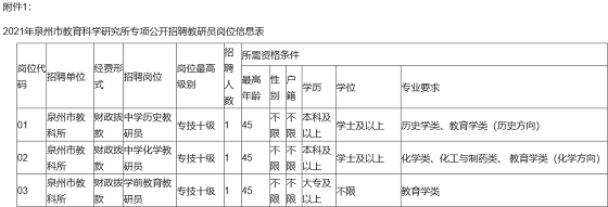 附件:1.2021年泉州市教育科學(xué)研究所專項公開招聘教研員崗位信息表