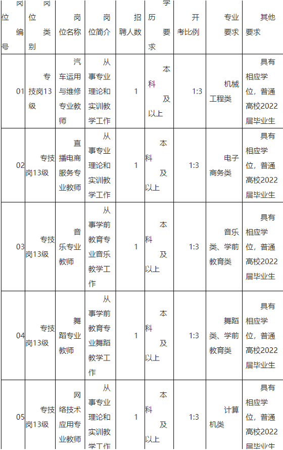 為加強(qiáng)職業(yè)教育師資隊(duì)伍建設(shè),優(yōu)化教師隊(duì)伍結(jié)構(gòu),提升技能型人才培養(yǎng)質(zhì)量,根據(jù)《江蘇省事業(yè)單位公開招聘人員辦法》《關(guān)于進(jìn)一步做好全省中小學(xué)校新進(jìn)教師公開招聘工作的意見》《關(guān)于進(jìn)一步做好全市中小學(xué)教師公開招聘工作的通知》等文件精神,江蘇省興化中等專業(yè)學(xué)校將于2021年12月中下旬赴相關(guān)高校招聘全額撥款事業(yè)編制教師5名,F(xiàn)將有關(guān)事項(xiàng)公告如下: