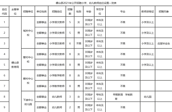 稷山縣2021年公開招聘小學(xué)、幼兒教師崗位設(shè)置一覽表