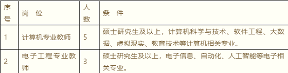 (三)應(yīng)聘人員學(xué)歷要求碩士研究生及以上學(xué)歷,且本科、碩士所學(xué)專業(yè)需一致或相近。高校退休返聘教師、軍轉(zhuǎn)干部及有多年企事業(yè)單位工作經(jīng)歷的人員,學(xué)歷要求可適當(dāng)放寬。