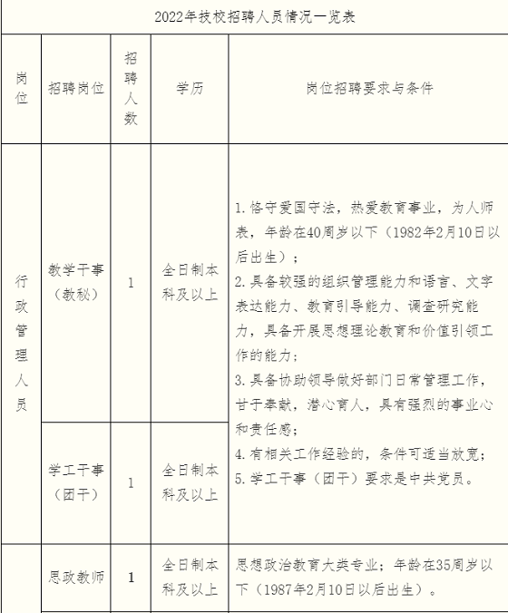 現(xiàn)根據(jù)工作需要,需招聘行政、教師、輔導(dǎo)員。具體如下: