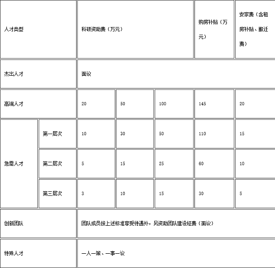 3.除享受學(xué)校同級(jí)同類人員工資福利等待遇外,還可享受購房補(bǔ)貼、安家費(fèi)、科研資助費(fèi)等,標(biāo)準(zhǔn)如下(單位:人民幣,稅前):