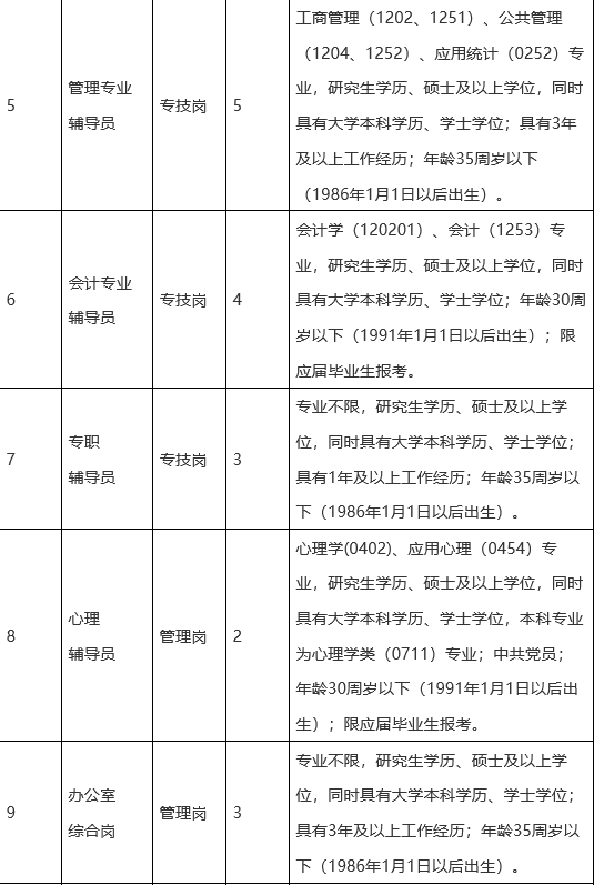 6.本次招聘的所有崗位均需上行政班,原則上5年內(nèi)不得轉(zhuǎn)崗。
