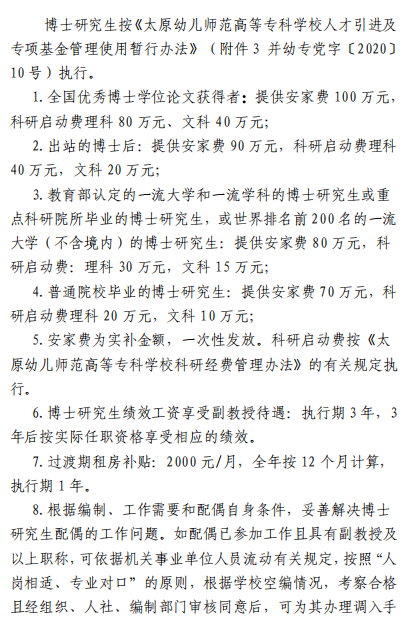 附件3:太原幼兒師范高等?茖W(xué)校人才引進及專項基金管理使用暫行辦法(并幼專黨字〔2020〕10號).pdf