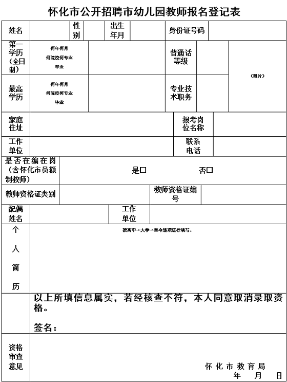 附件:懷化市公開招聘市幼兒園教師報名登記表