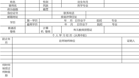 滎陽市第二高級中學(xué)新招聘教師基本情況登記表