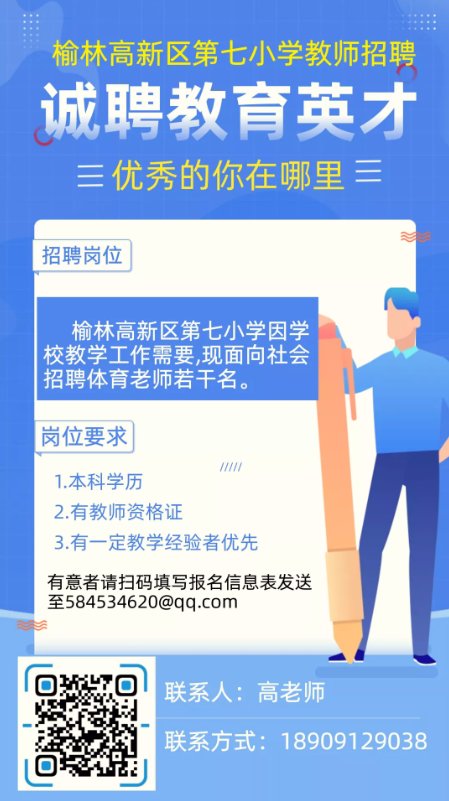 榆林高新區(qū)第七小學因學校教學工作需要,現(xiàn)面向社會招聘體育老師若干名。