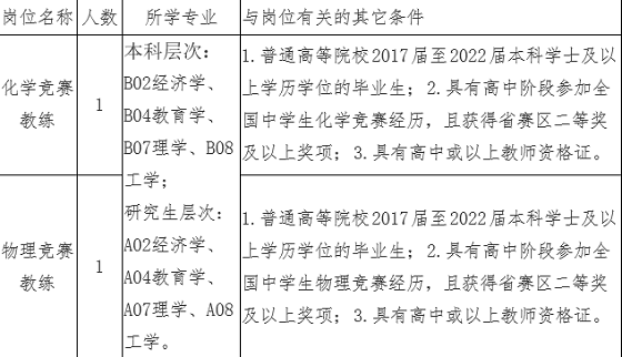 面向普通高等院校2017屆至2022屆本科學(xué)士及以上學(xué)歷學(xué)位的畢業(yè)生,公開招聘從事普通高中物理競賽教練1人和化學(xué)競賽教練1人。