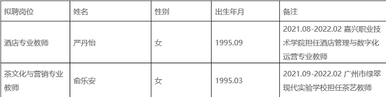按照《寧波市事業(yè)單位公開招聘工作人員實(shí)施辦法》和《浙江商業(yè)技師學(xué)院公開招聘工作人員公告》(2021年11月10日)規(guī)定的程序,浙江商業(yè)技師學(xué)院公開招聘工作通過(guò)公開報(bào)名、統(tǒng)一考試,已進(jìn)入擇優(yōu)聘用程序。根據(jù)試講、體檢、考核結(jié)果,在合格人員中,經(jīng)院領(lǐng)導(dǎo)班子集體研究擇優(yōu)確定擬聘用人員2名,現(xiàn)將人員名單公示如下: