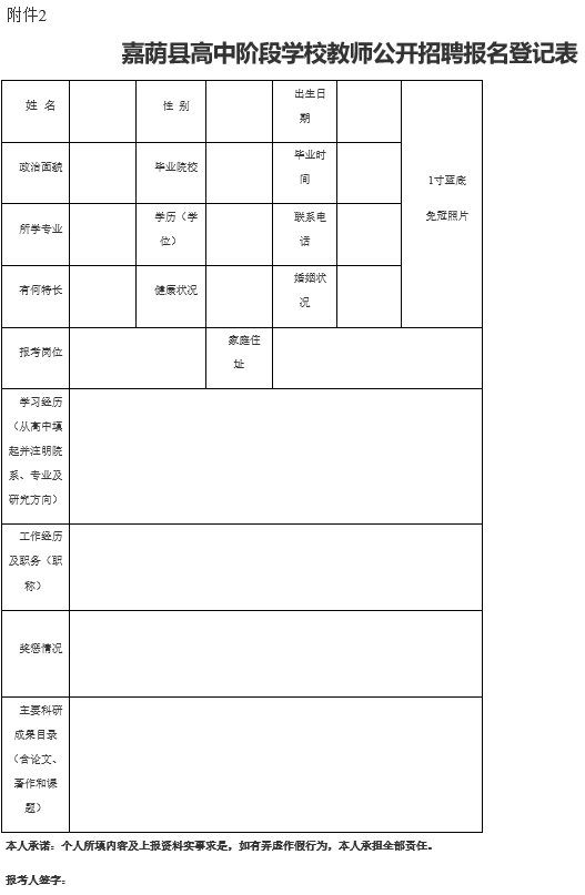2.《嘉蔭縣高中階段學(xué)校教師公開招聘報名登記表》